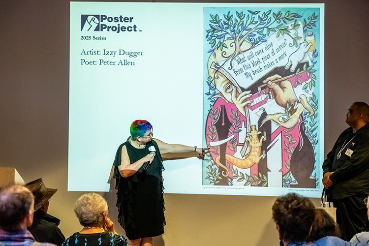 Scott Herrmann, master of ceremonies, and poet Robert Keim