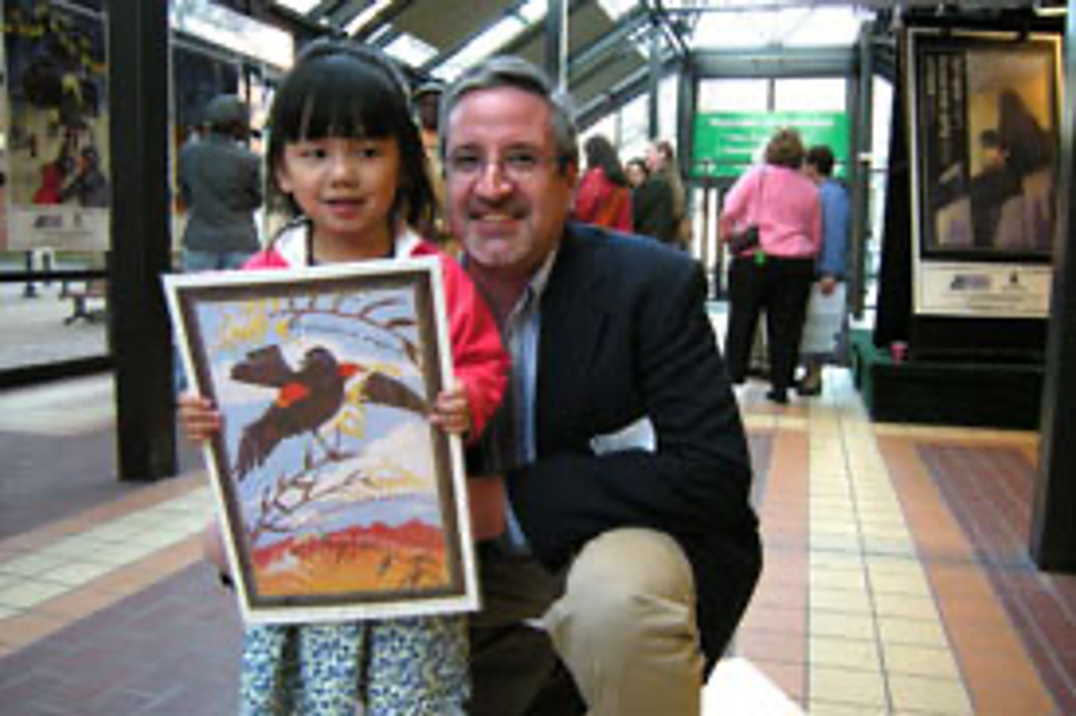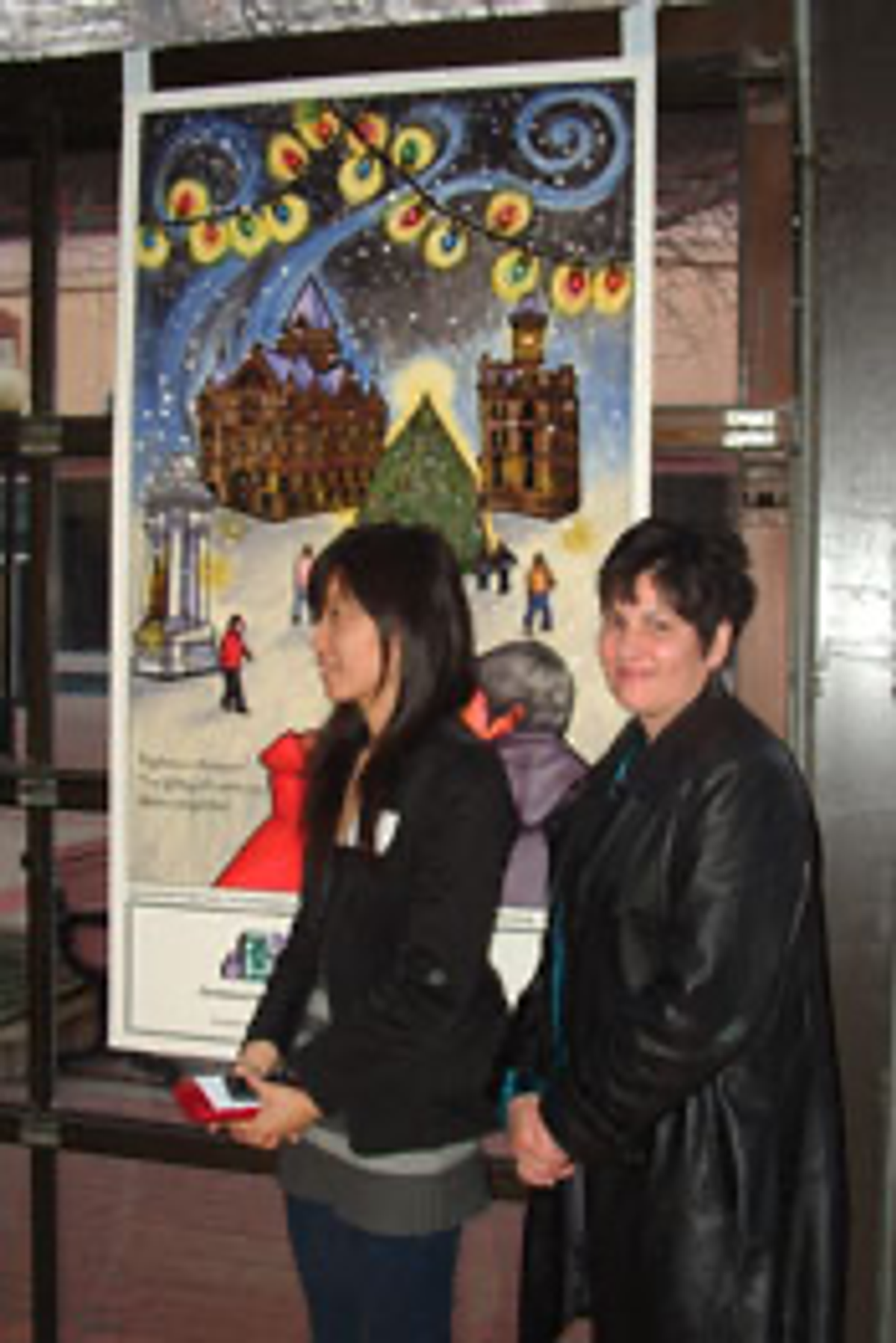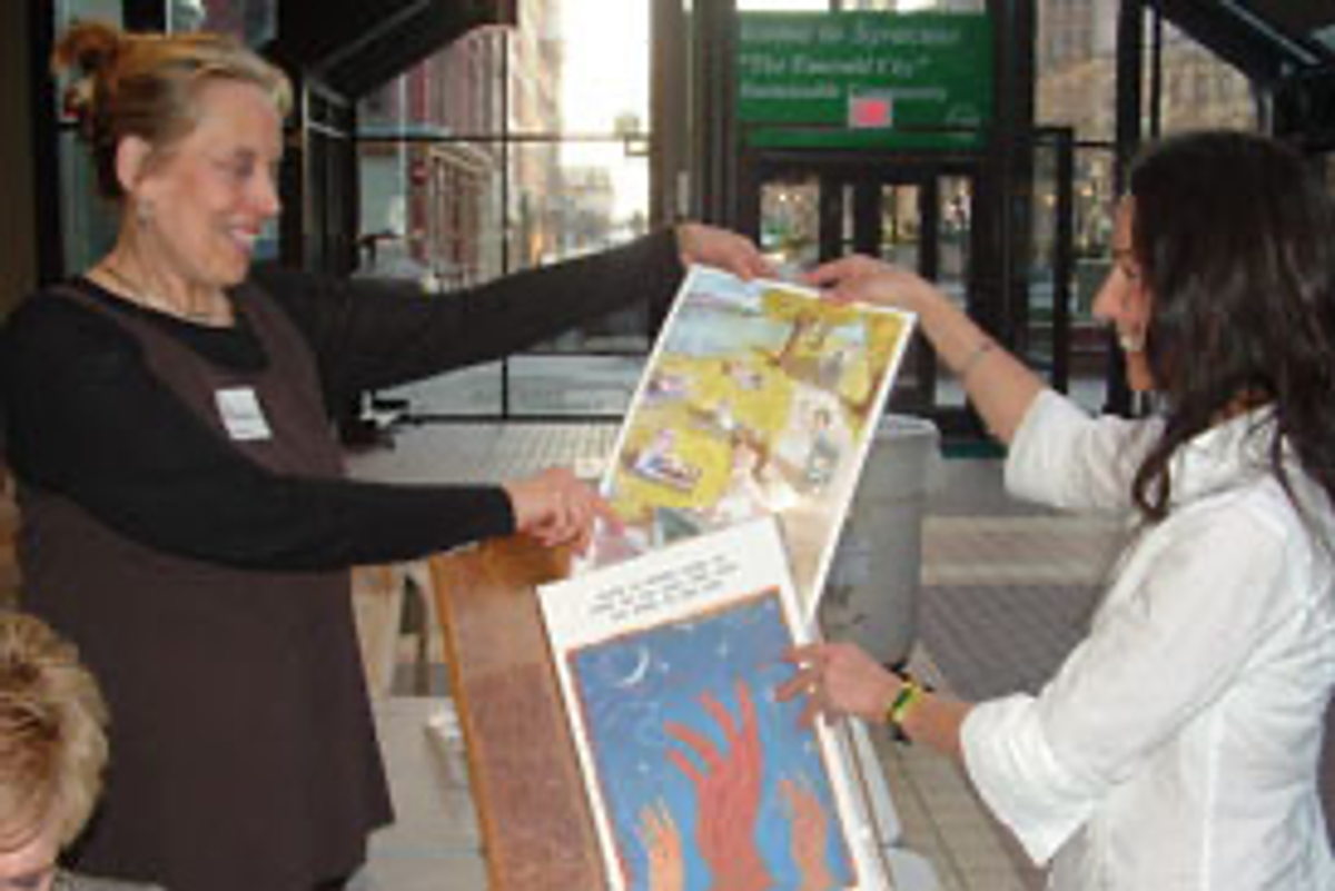 Joyce Kusack-McGuire, board member, selling poster print to Lucie Wellner.