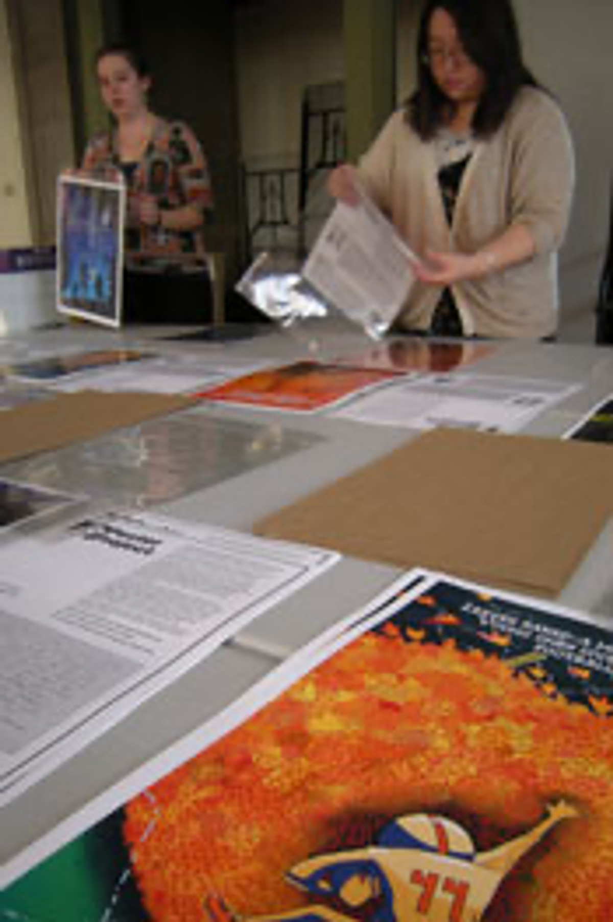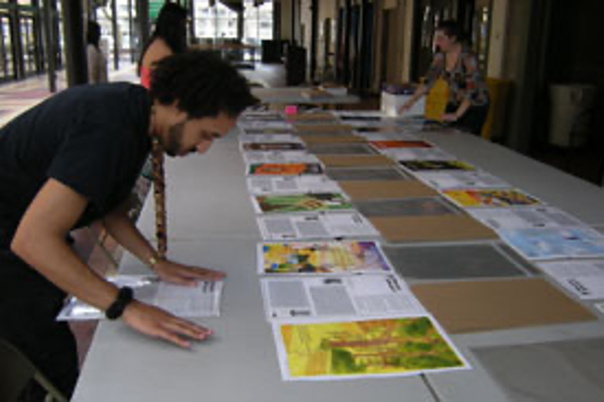 Silent auction of improvisional drawing. Photo by Marc Maynard.