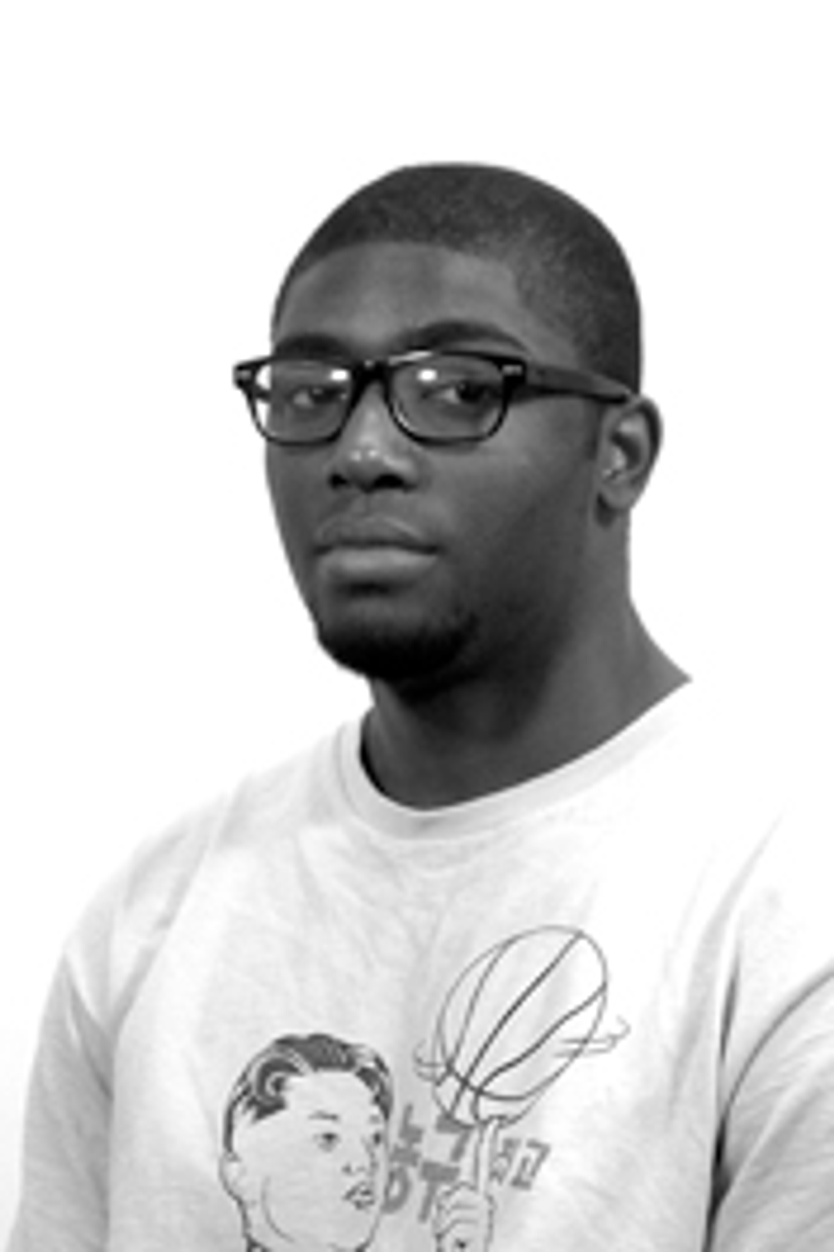 This poem made me think about not letting your circumstances influence how you see yourself, how you carry yourself, or the decisions you make. For the first line, “The streets don't run me,” I wanted to incorporate a map of Syracuse. I found this old streetcar map, which is at the heart of the image. I wanted the man to be a part of the background image, but also separate from it. So I created him partly drawn, fading into a painting. He's a part of Syracuse, but he's also his own person. I liked the shape of the map, and it fit right there, branching out from the heart. The streets look like veins. I'm from Houston, but I've been here in Syracuse for four years. I made the man at the center of the image a person who looked similar to, or had the feeling of, the people I've seen downtown.