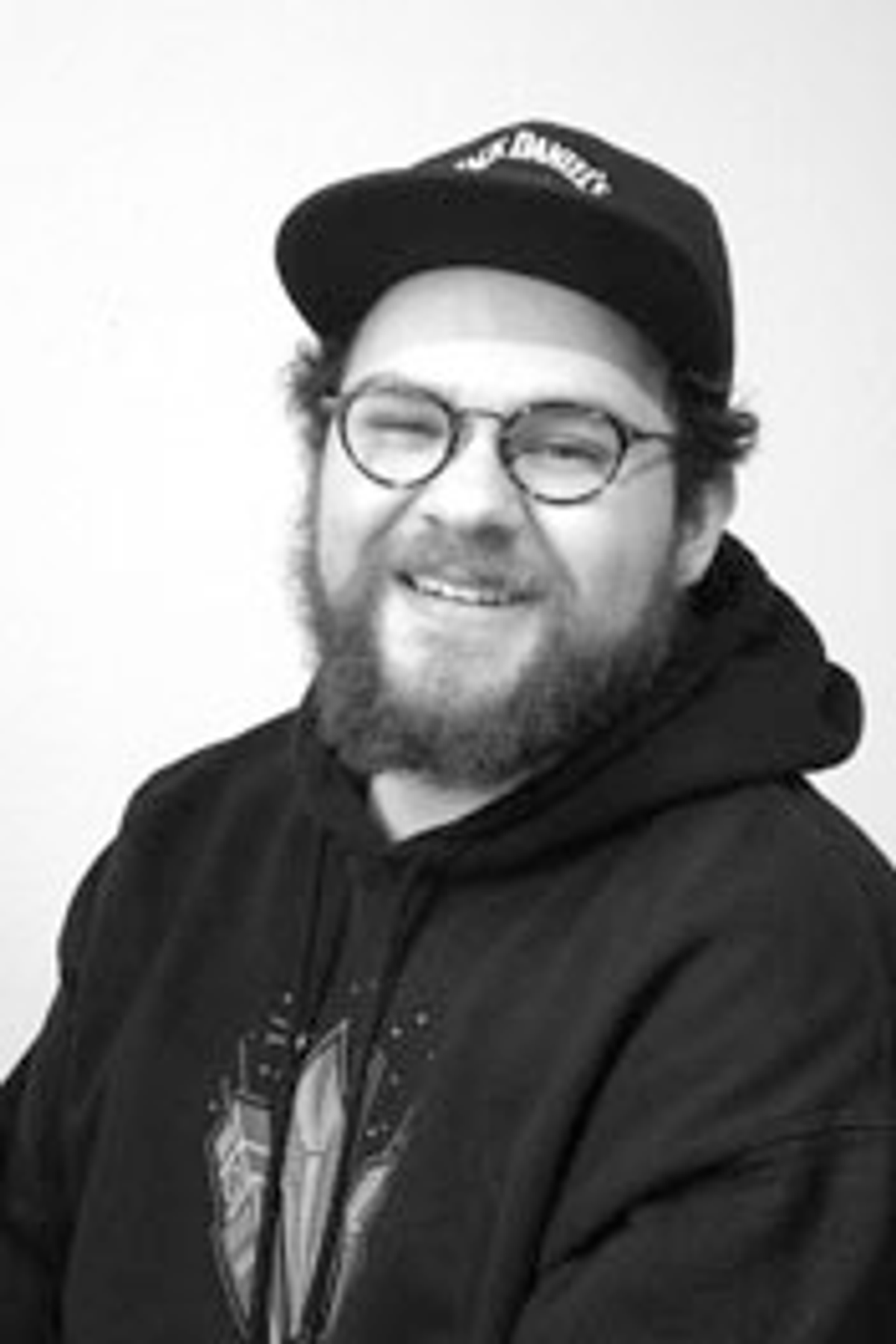 When I read this poem, the first word that popped out was “Guinness,” because I like beer. Then I saw that the poem was also referring to Kitty Hoynes, and since that's one of my favorite bars in downtown Syracuse, I thought I could have a lot of fun with it. The first time I went to Kitty Hoynes I met—not the owner, but a man who worked there called Mike Heagerty. He was very outgoing, whimsical. He had the shaved head, the beard, the comb-over hair. I was going for that kind of hipster vibe in the poster, because that's what I feel when I go to Kitty Hoynes. I really like the texture in the hair playing off the graphic feature of his face and the beer, and the flowing-ness in the mustache—it shows that he really enjoys the beer—and the off-centered-ness, which really strikes me.