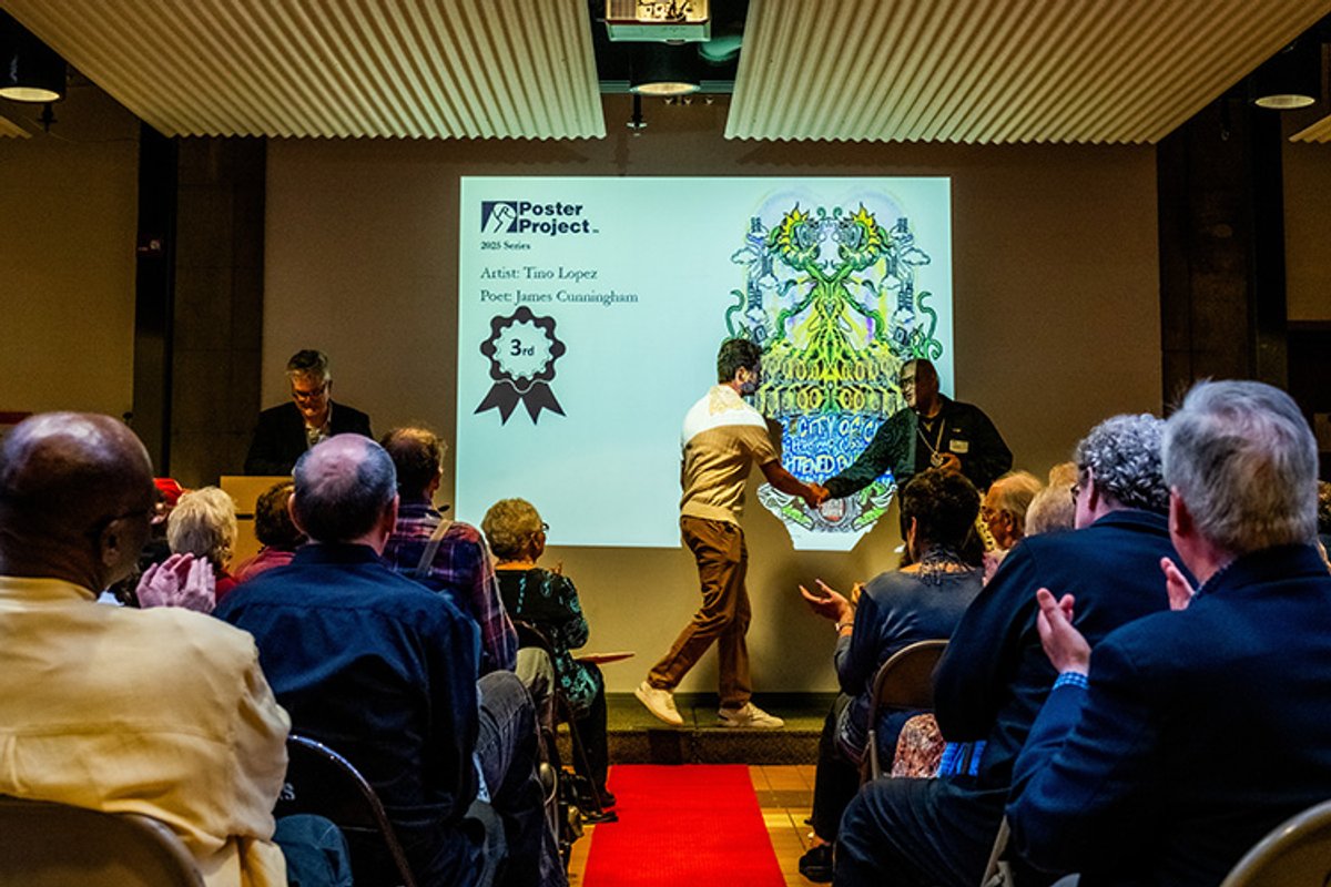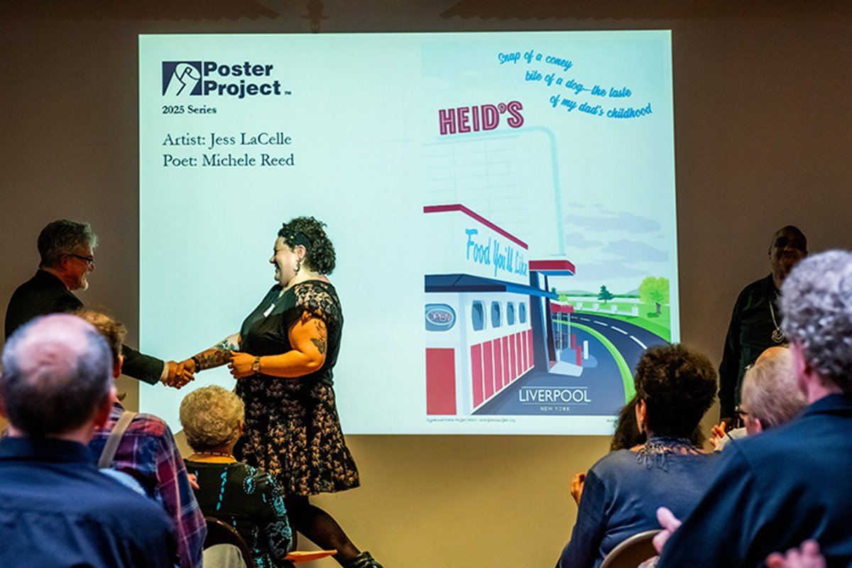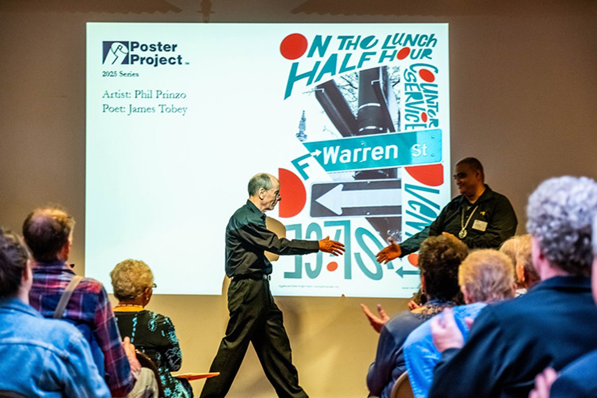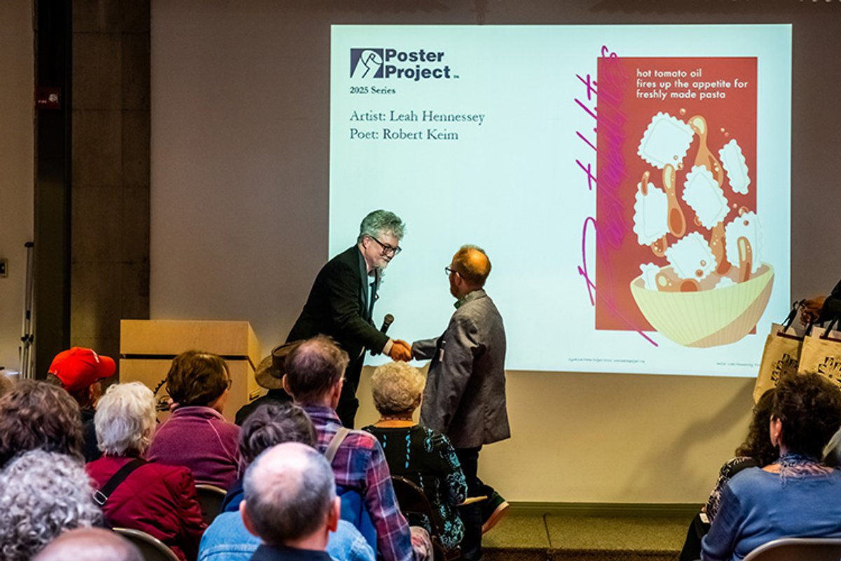 Scott Herrmann, master of ceremonies, and poet Robert Keim