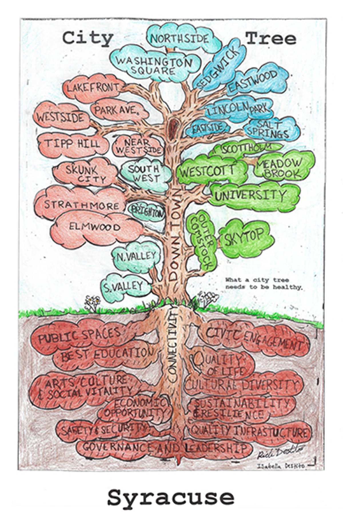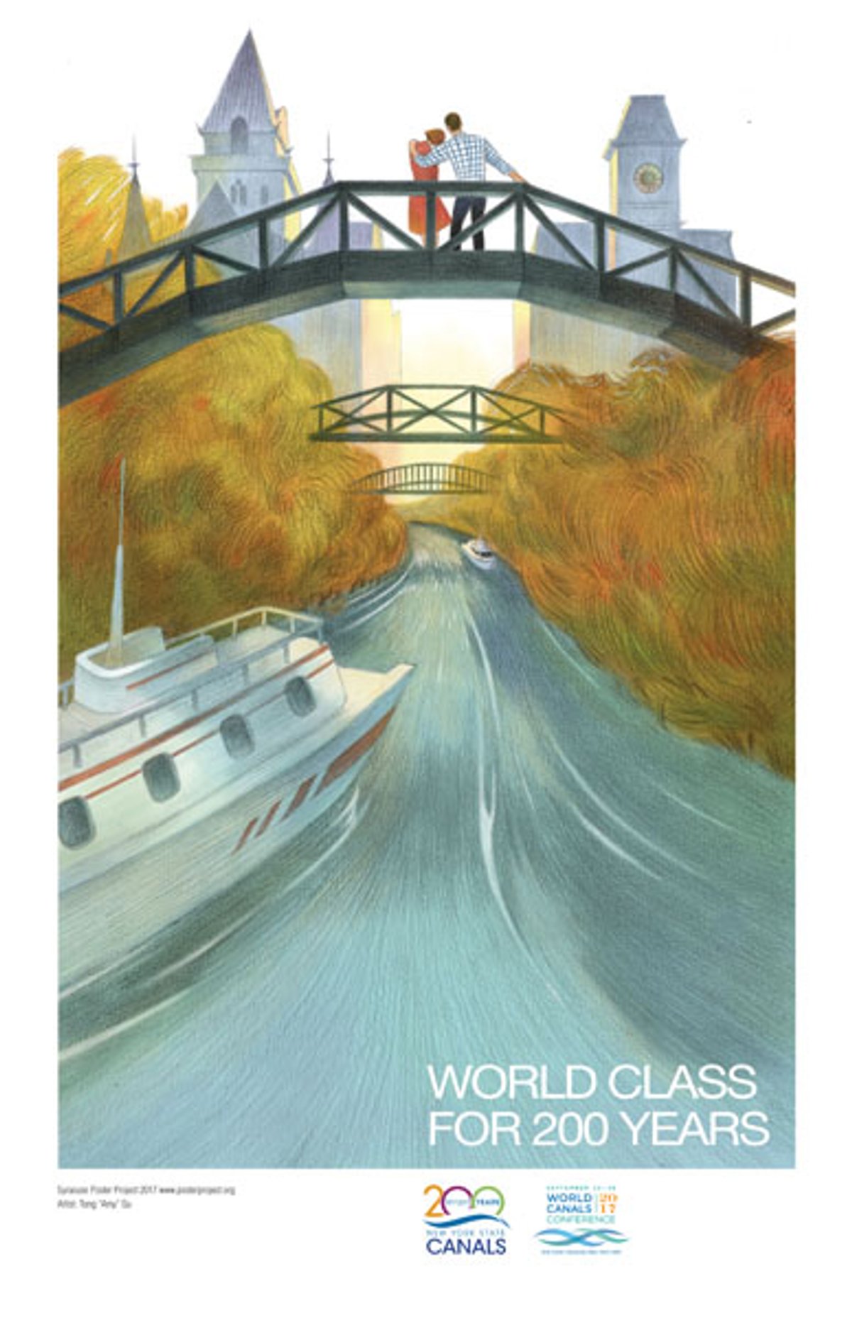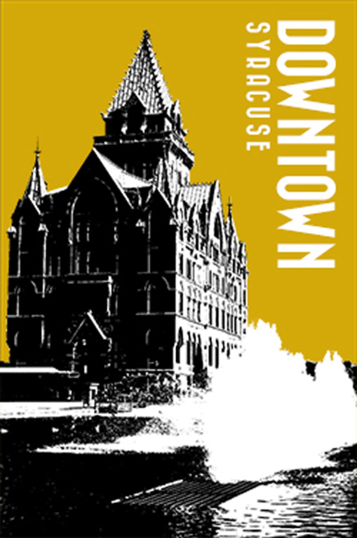 To kick off this expanded activity, we offer a series of Syracuse themed posters by Cayetano Valenzuela, a graphic artist and sign painter based at the Delavan Center; Tommy Lincoln, a designer and graphic artist active in the public art scene; Jason Evans, an architect and designer; the late Hall Groat, a Syracuse illustrator; and Tong "Amy" Su and Wenyi Qian, international students from China.